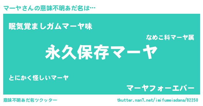 | ヘコむあだ名 | 『マーヤ(笑)』『なまこ酢』 |