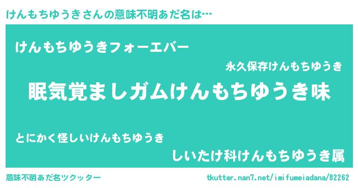 | 女子向けラノベタイトル風あだ名 | 『けんもちゆうき恋絵巻』 |