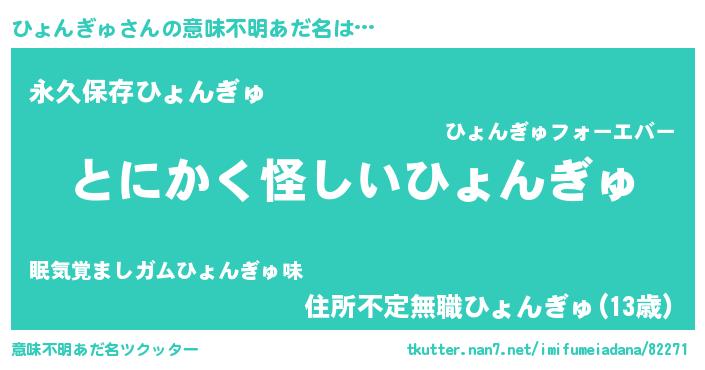 | 男性向けラノベタイトル風あだ名 | 『ひょんぎゅに滅ぼされるだけの簡単なお仕事です』 |