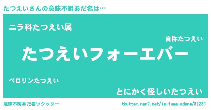 | ファンタジー風あだ名 | 『エターナルタツエイー』『ゼタツトゥ』 |