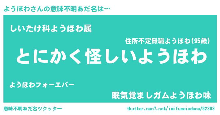 | 胡散臭い通販商品みたいなあだ名 | 『信頼と実績のペンダント…その名も「ようほわ」』 |