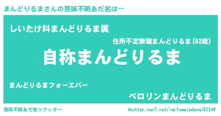 | 男性向けラノベタイトル風あだ名 | 『うちのまんどりるまが世界を掌握している!』 |