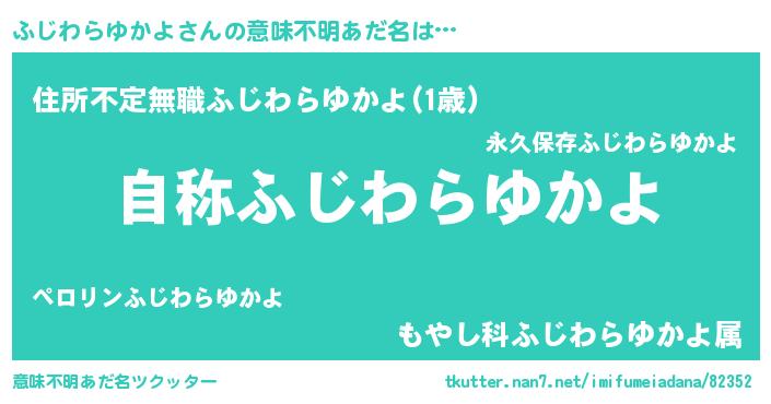 | ヘコむあだ名 | 『ふじわらゆかよ(小並感)』『ふじふぇ~』 |