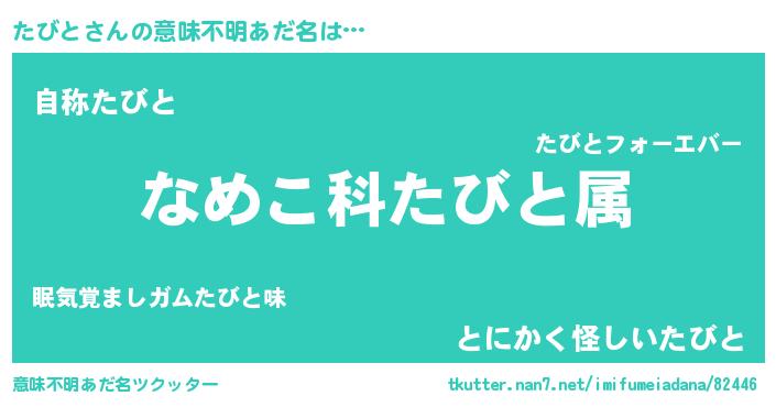 | ポケモン風あだ名 | 『タビゴンZ』『タビキング』 |
