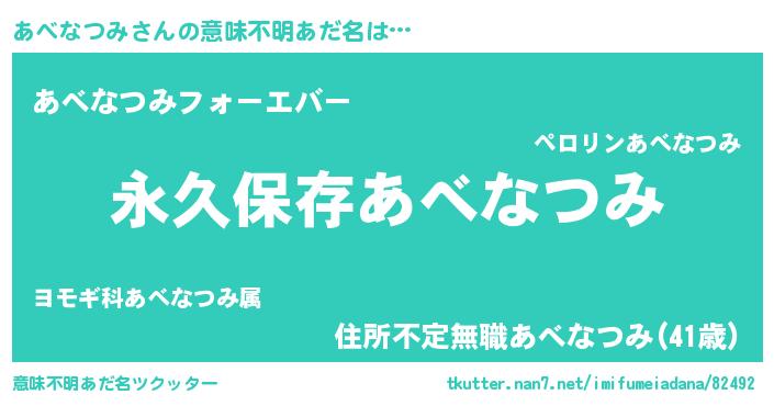 | ヘコむあだ名 | 『あべなつみ(笑)』『酢こんぶ』 |