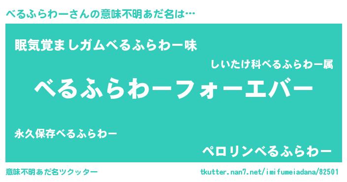 | 男性向けラノベタイトル風あだ名 | 『うちのべるふらわーが世界を掌握している!』 |