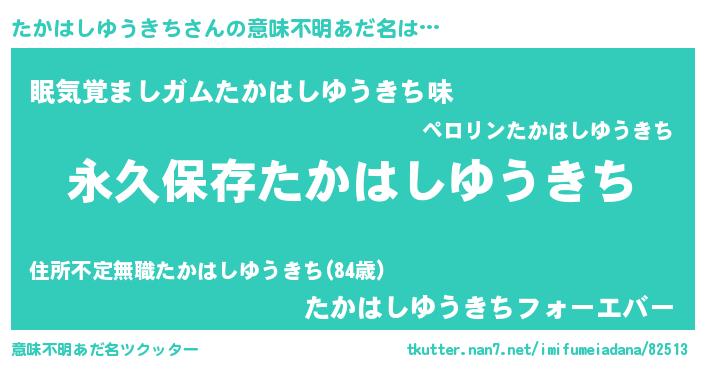 | ヘコむあだ名 | 『たかはしゆうきち(爆)』『酢こんぶ』 |