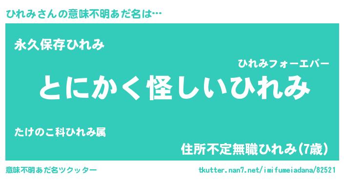 | 女子向けラノベタイトル風あだ名 | 『ひれみは平凡を望む』 |