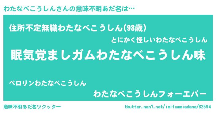 | 男性向けラノベタイトル風あだ名 | 『ノーゲーム・ノーワタナベコウシン』 |