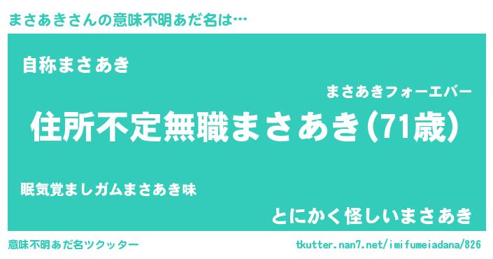 | 男性向けラノベタイトル風あだ名 | 『この素晴らしい世界にまさあきを!』 |