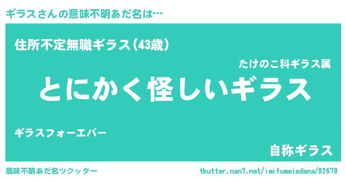 | 男性向けラノベタイトル風あだ名 | 『ダンジョンにギラスを求めるのは間違っているだろうか』 |