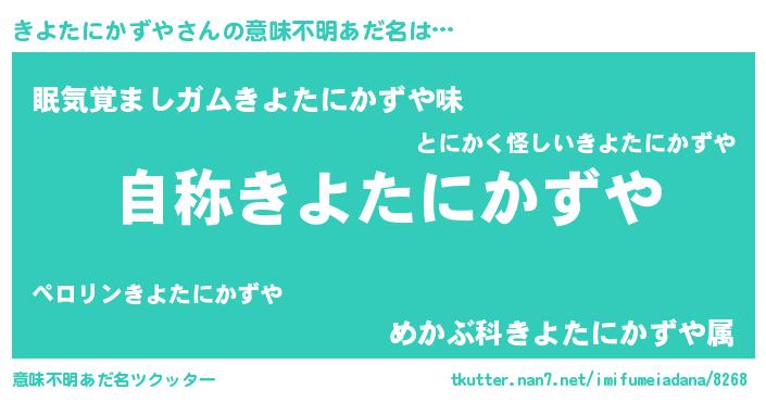 | 男性向けラノベタイトル風あだ名 | 『Re:きよたにかずやから始める異世界生活』 |