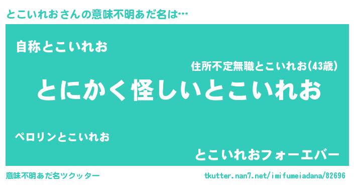| 胡散臭い通販商品みたいなあだ名 | 『信頼と実績のサプリメント…その名も「とこいれお」』 |