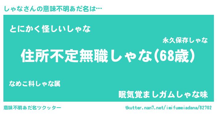 | 男性向けラノベタイトル風あだ名 | 『この素晴らしい世界にしゃなを!』 |