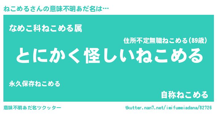 | 男性向けラノベタイトル風あだ名 | 『ねこめるの嫁は女の子じゃないと思った?』 |