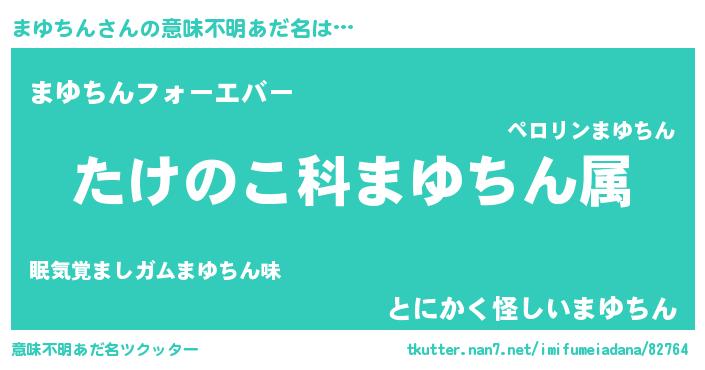 | 男性向けラノベタイトル風あだ名 | 『転生したらまゆちんだった件』 |