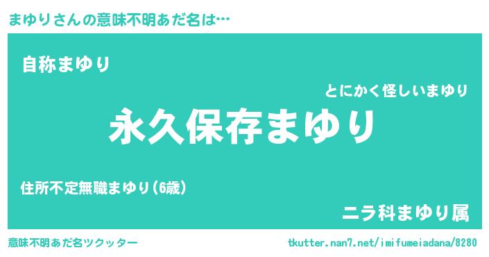 | 胡散臭い通販商品みたいなあだ名 | 『来世でも幸せになれる水素水…その名も「まゆり」』 |