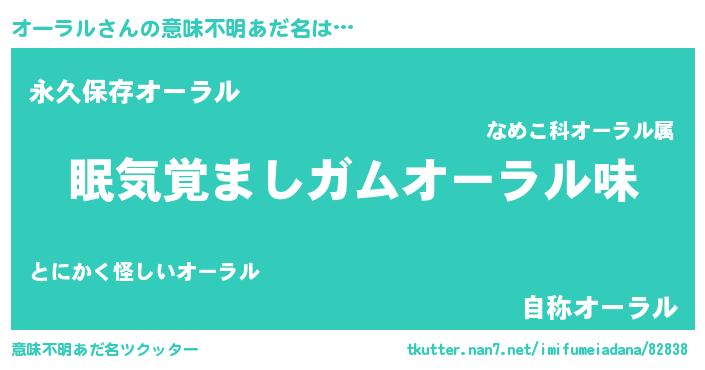 | 女子向けラノベタイトル風あだ名 | 『オーラル恋絵巻』『オーラル様がみてる』 |