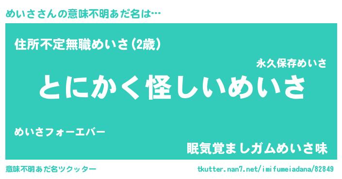 | 女子向けラノベタイトル風あだ名 | 『めいさ様がみてる』『死神めいさの再婚』 |