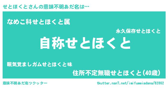 | 肩書あだ名 | 『せとほくと閣下』『せとほくと大佐』 |