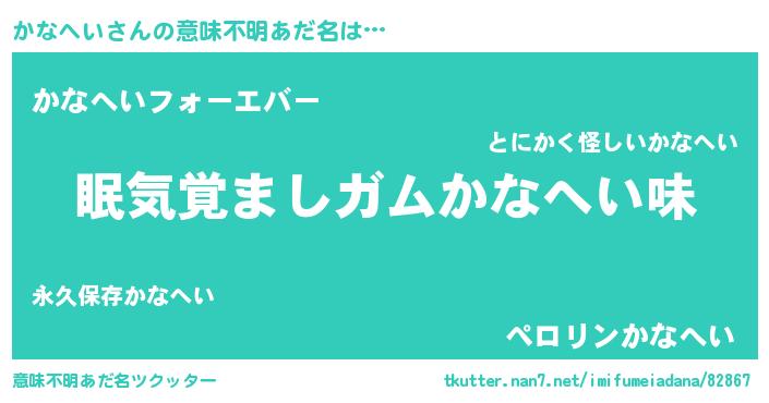 | ヒーロー風カッコイイあだ名 | 『天空の使者かなへい』『炎刃騎士カナ』 |