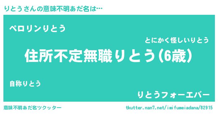 | 男性向けラノベタイトル風あだ名 | 『この素晴らしい世界にりとうを!』 |