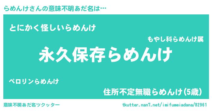 | 胡散臭い通販商品みたいなあだ名 | 『絶対に幸福をもたらす健康食品…その名も「らめんけ」』 |