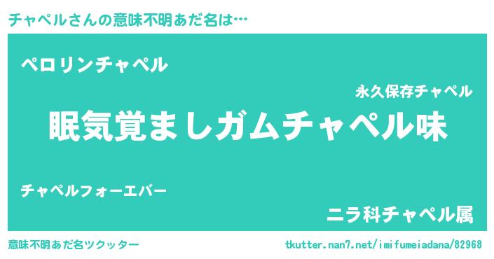 | ヒーロー風カッコイイあだ名 | 『正義の使者チャペル』『ネオチャペル』 |