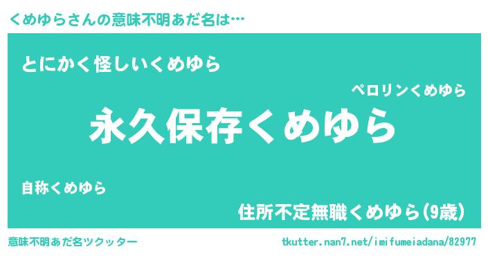 | ヘコむあだ名 | 『くめゆら(震え声)』『くめっちょ』 |