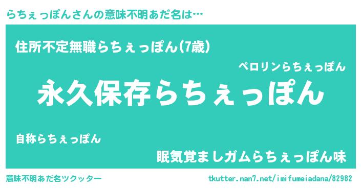 | 伝説のあだ名 | 『古より伝わる吟遊詩人らちぇっぽん』 |