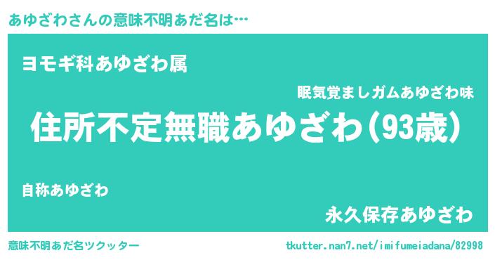 | ヘコむあだ名 | 『あゆざわ(遠い目)』『あゆっふぃ~』 |