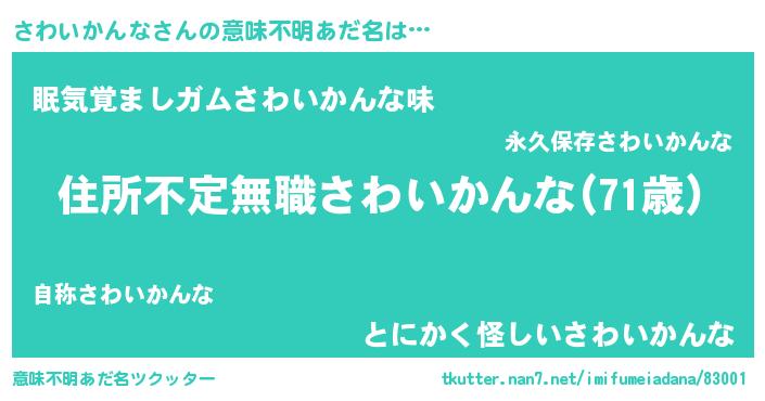 | 欧米人風あだ名 | 『アンジェラ・さわいかんな』 |