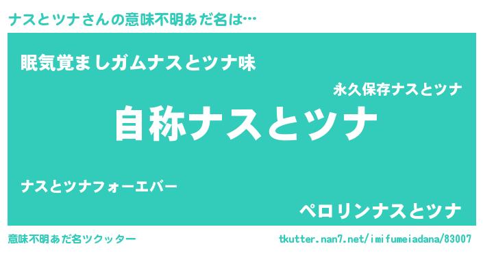| 女子向けラノベタイトル風あだ名 | 『闇のナスとツナ』『ナスとツナ恋絵巻』 |