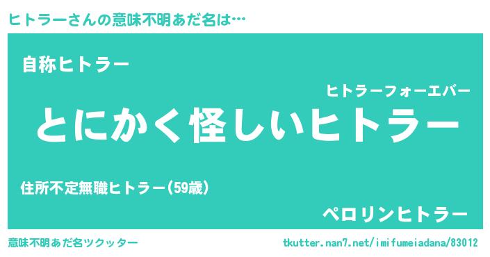| 胡散臭い通販商品みたいなあだ名 | 『信頼と実績のペンダント…その名も「ヒトラー」』 |