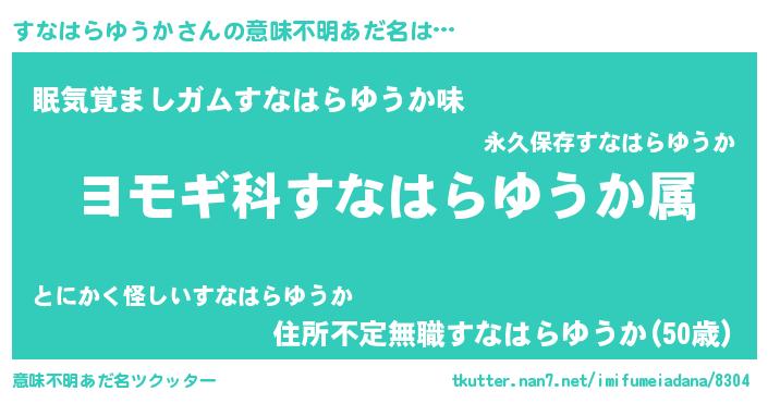 | ヘコむあだ名 | 『すなはらゆうか(苦笑)』『すな太郎』 |