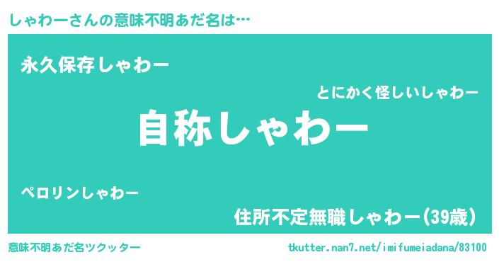 | ヘコむあだ名 | 『しゃわー(小並感)』『しゃぷりん』 |