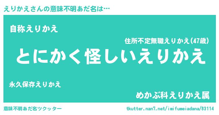 | 男性向けラノベタイトル風あだ名 | 『えりかえに滅ぼされるだけの簡単なお仕事です』 |