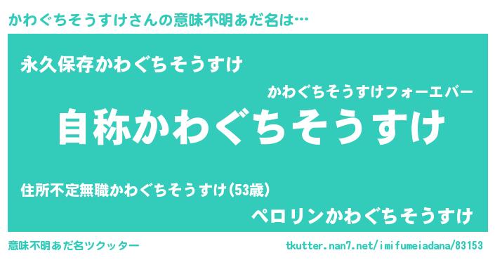 | ヘコむあだ名 | 『かわぐちそうすけ(遠い目)』『かわもー』 |