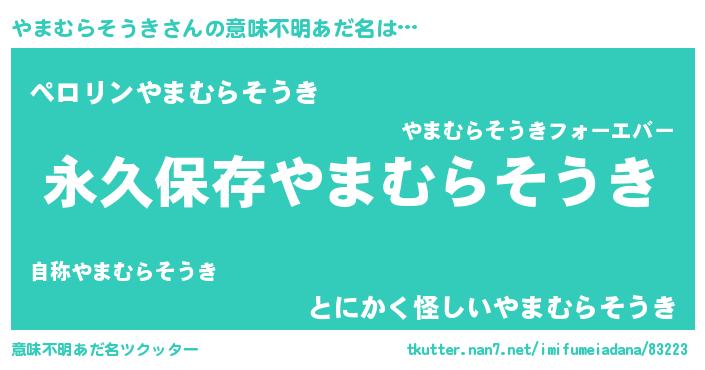 | 男性向けラノベタイトル風あだ名 | 『やまむらそうきという概念が存在しない退屈な世界 』 |
