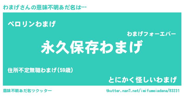 | 女子向けラノベタイトル風あだ名 | 『異世界で失敗しない100のわまげ』 |