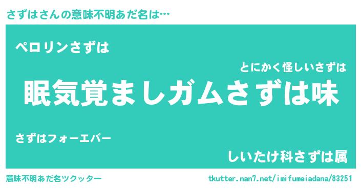 | ヒーロー風カッコイイあだ名 | 『天空の使者さずは』『スーパーサズハ』 |