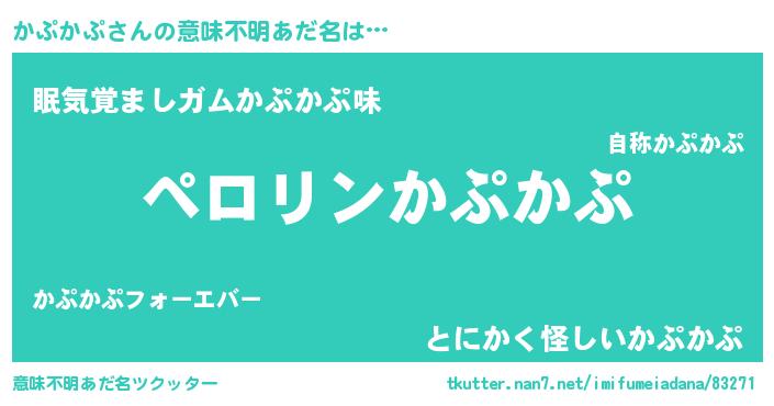 | ヒーロー風カッコイイあだ名 | 『スーパーカプカプ』『愛の使者かぷかぷ』 |