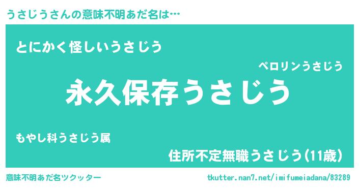 | 男性向けラノベタイトル風あだ名 | 『うさじうに滅ぼされるだけの簡単なお仕事です』 |