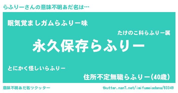 | ヒーロー風カッコイイあだ名 | 『ネオラフリー』『友情の使者らふりー』 |