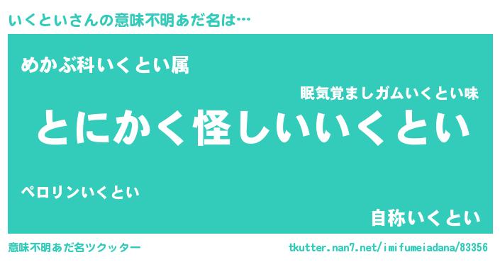 | 胡散臭い通販商品みたいなあだ名 | 『信頼と実績のサプリメント…その名も「いくとい」』 |