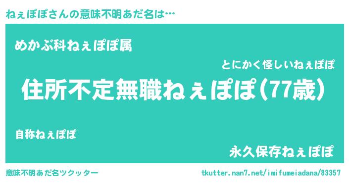 | ポケモン風あだ名 | 『ネーェイ』『ネェゴンZ』『ゼニネェ』 |