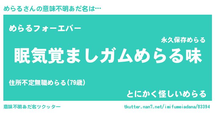 | ヒーロー風カッコイイあだ名 | 『慈愛の使者めらる』『炎刃騎士メラ』 |