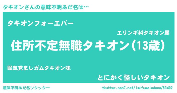 | ポケモン風あだ名 | 『ターキイ』『タキオダネ』 |