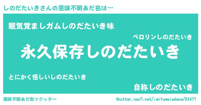 | 伝説のあだ名 | 『古文書に記された暗殺者しのだたいき』 |