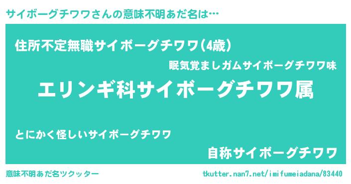 | 男性向けラノベタイトル風あだ名 | 『緋弾のサイボーグチワワ』 |